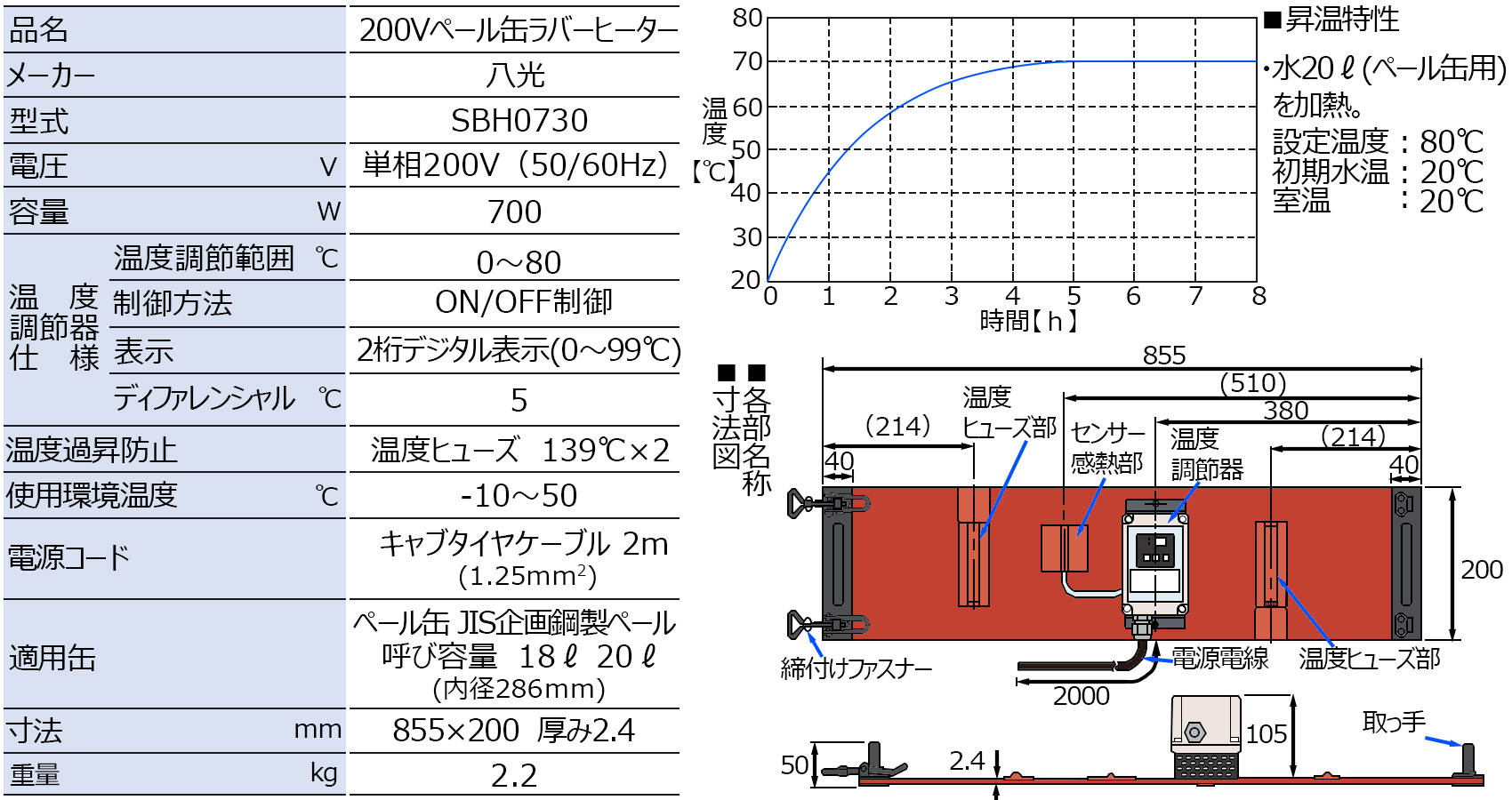 シリコンラバーヒーター及び温度調節器が一体化されて