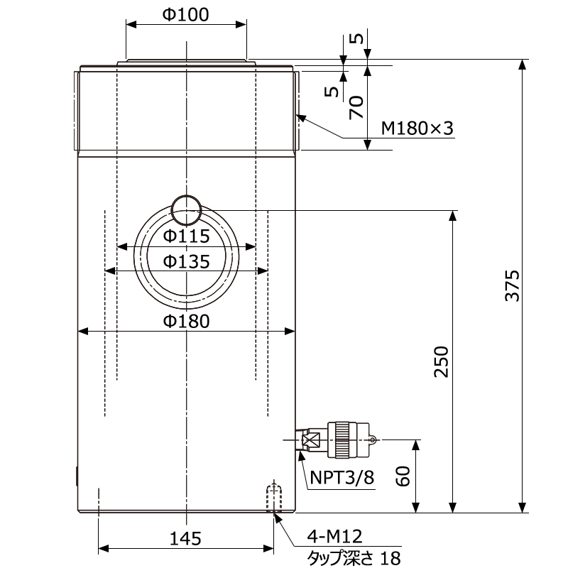 単動S(スプリング戻り)タイプ。