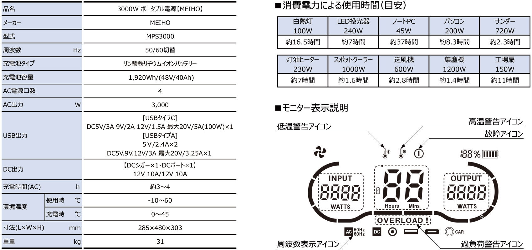 各種保護機能付(高温・低温・過充電・過負荷・短絡・