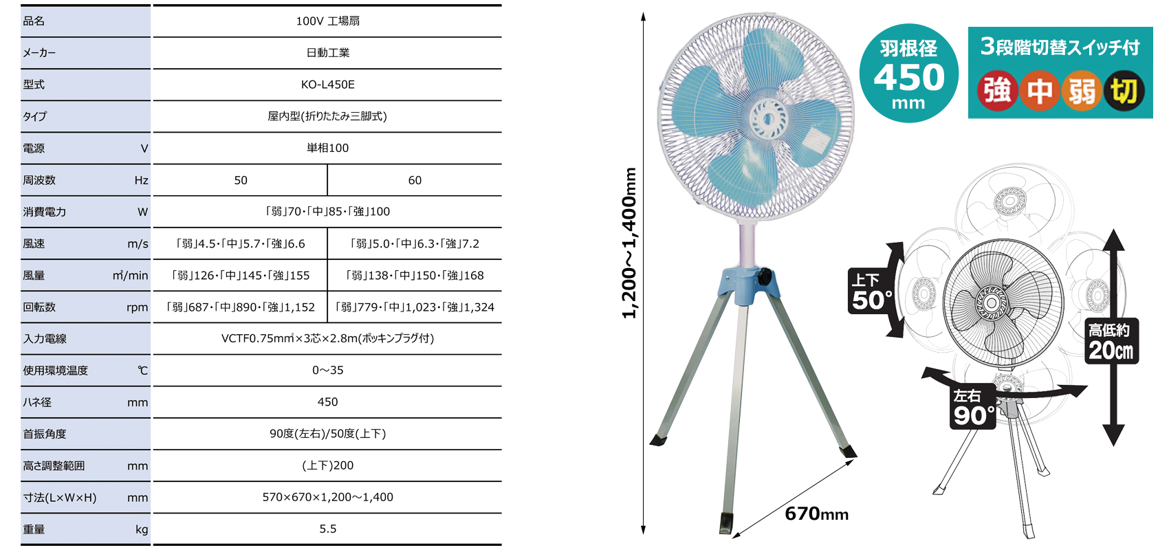 3段階切替式。風向きも上下・左右・高低調整可能です。