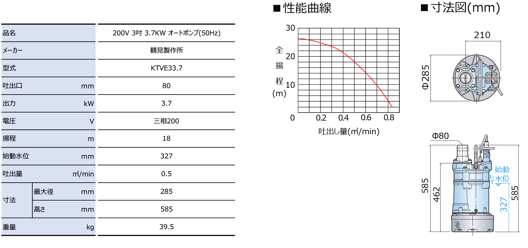 土木・建築工事の排水用。一般的揚水・排水用。