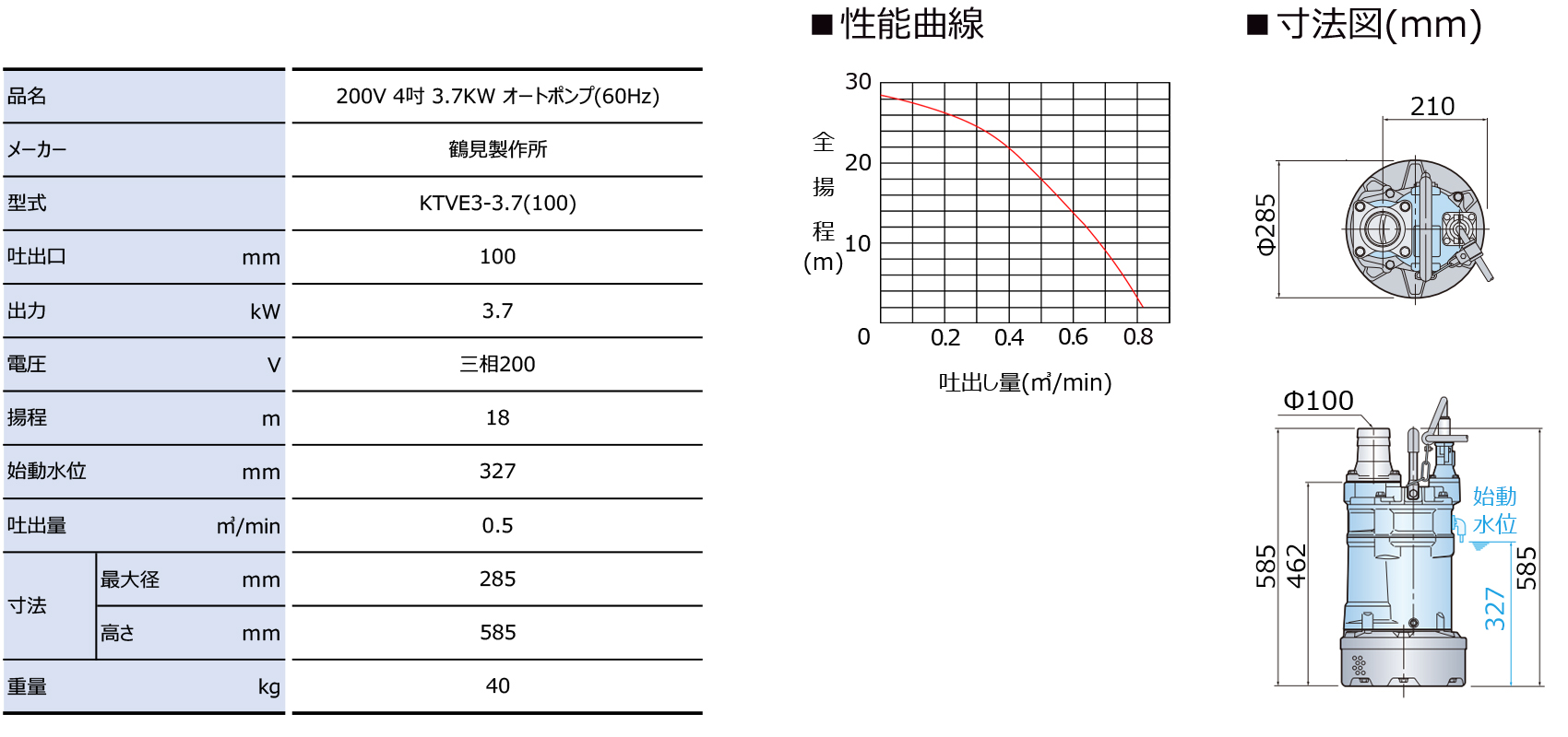 • 200V 4吋 3.7KW オートポンプ(60Hz)