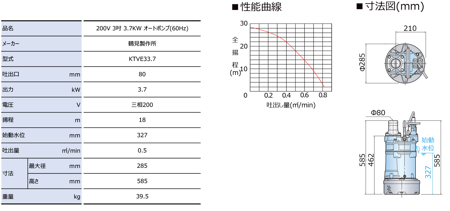 • 200V 3吋 3.7KW オートポンプ(60Hz)