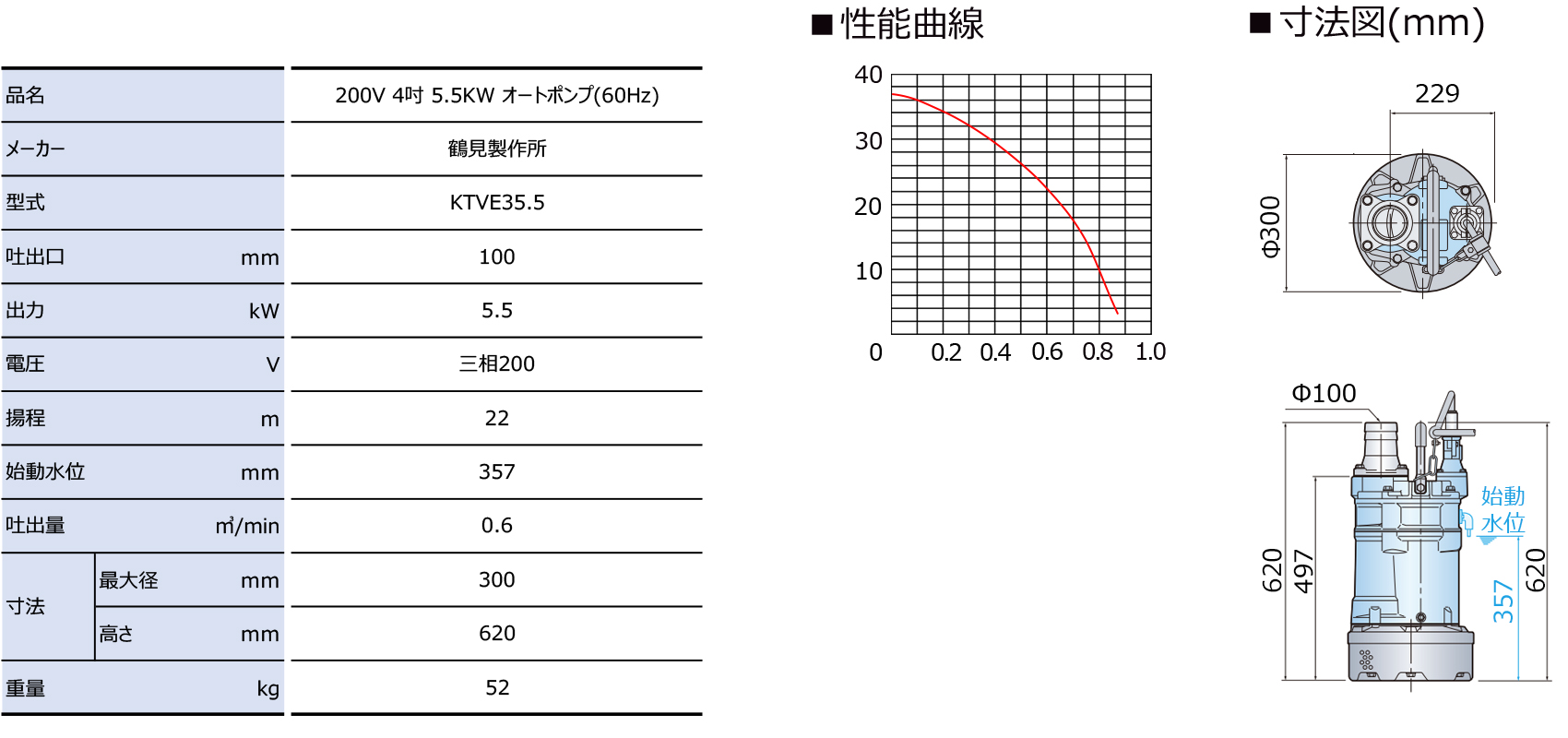 • 200V 4吋 5.5KW オートポンプ(60Hz)