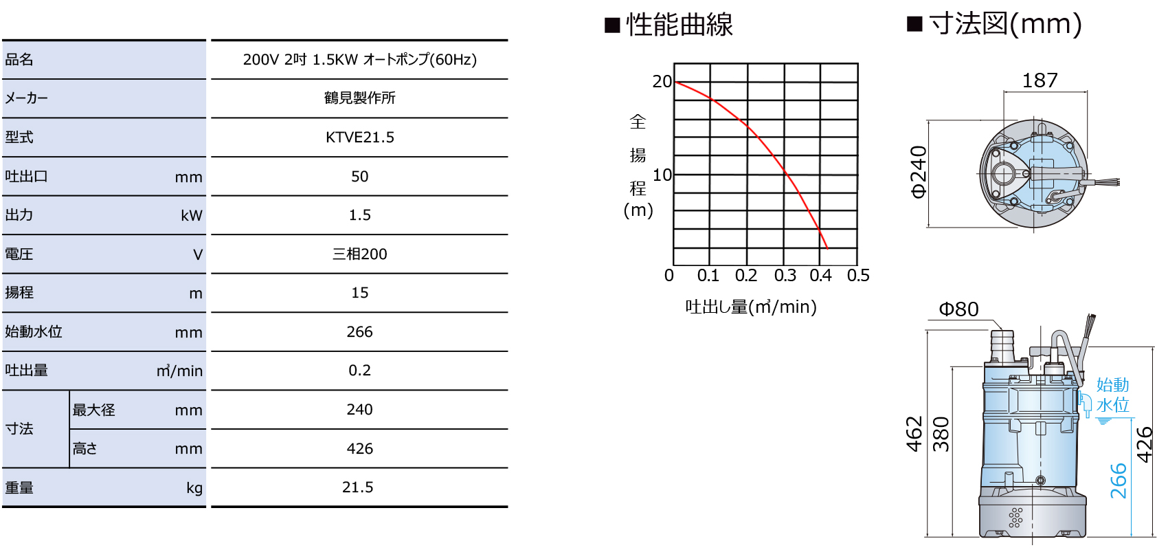 • 200V 2吋 1.5KW オートポンプ(60Hz)