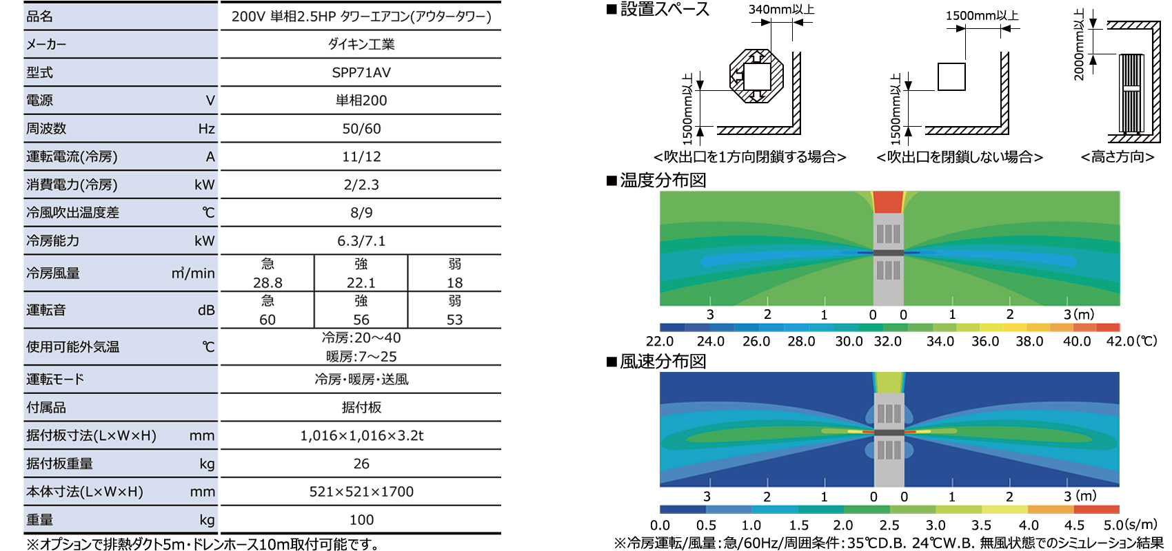 の吊り作業が可能。吹出口閉鎖板を取付けることにより、