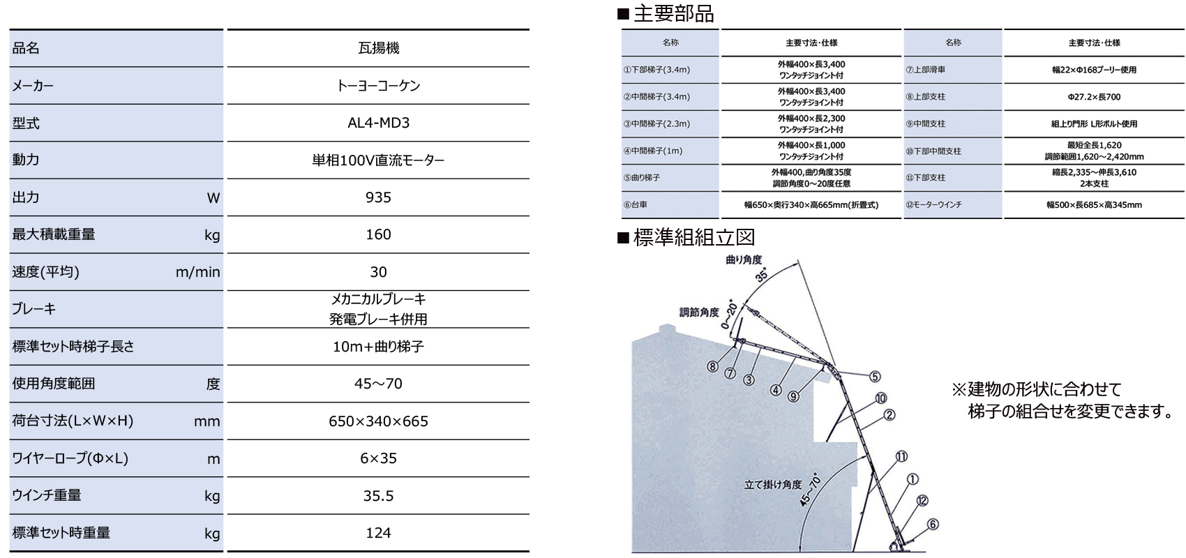 アルミ連結梯子で、1つ1つの部品は軽量です。